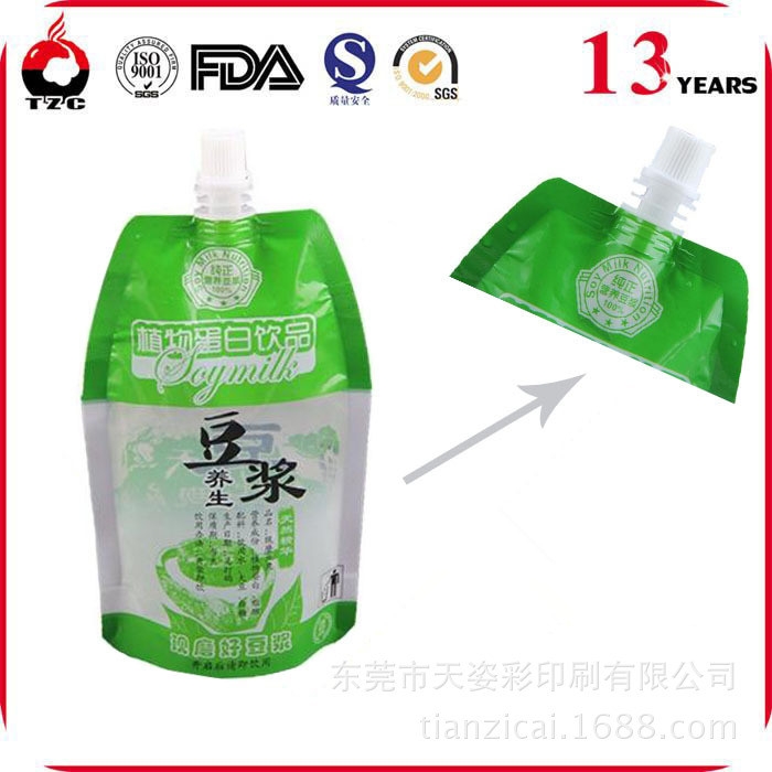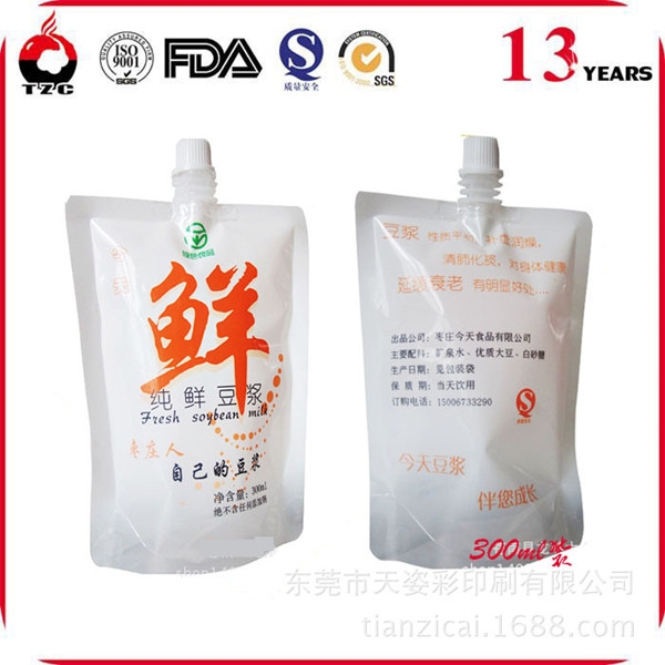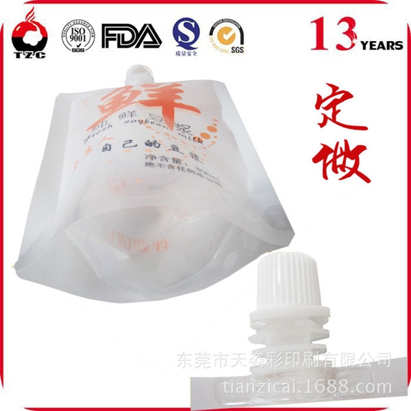 東莞廠家生產(chǎn)鮮豆?jié){牛奶帶嘴直立袋 定制各種飲品吸嘴袋 精美印刷